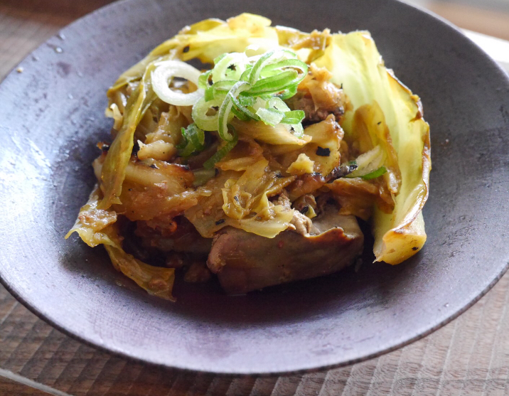 しっかり火を通したキャベツの芯は柔らかく、レバーも甘辛で美味しい!