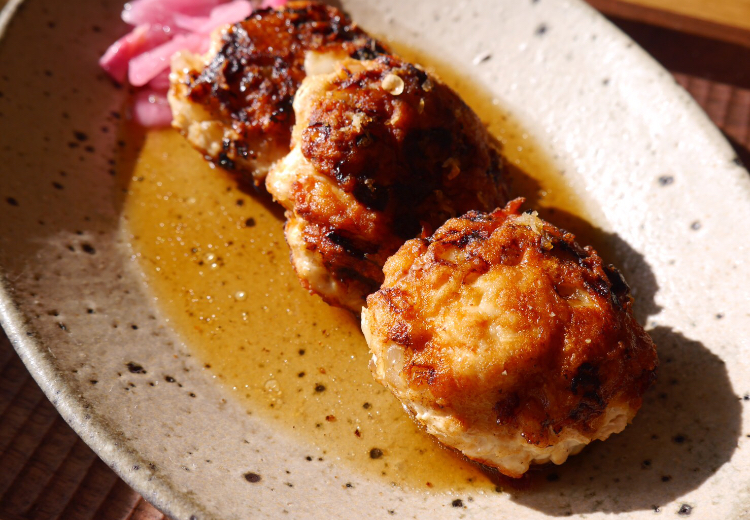 ふわふわのつくねではなく、表面カリッと中がふんわりした食感のつくねに。