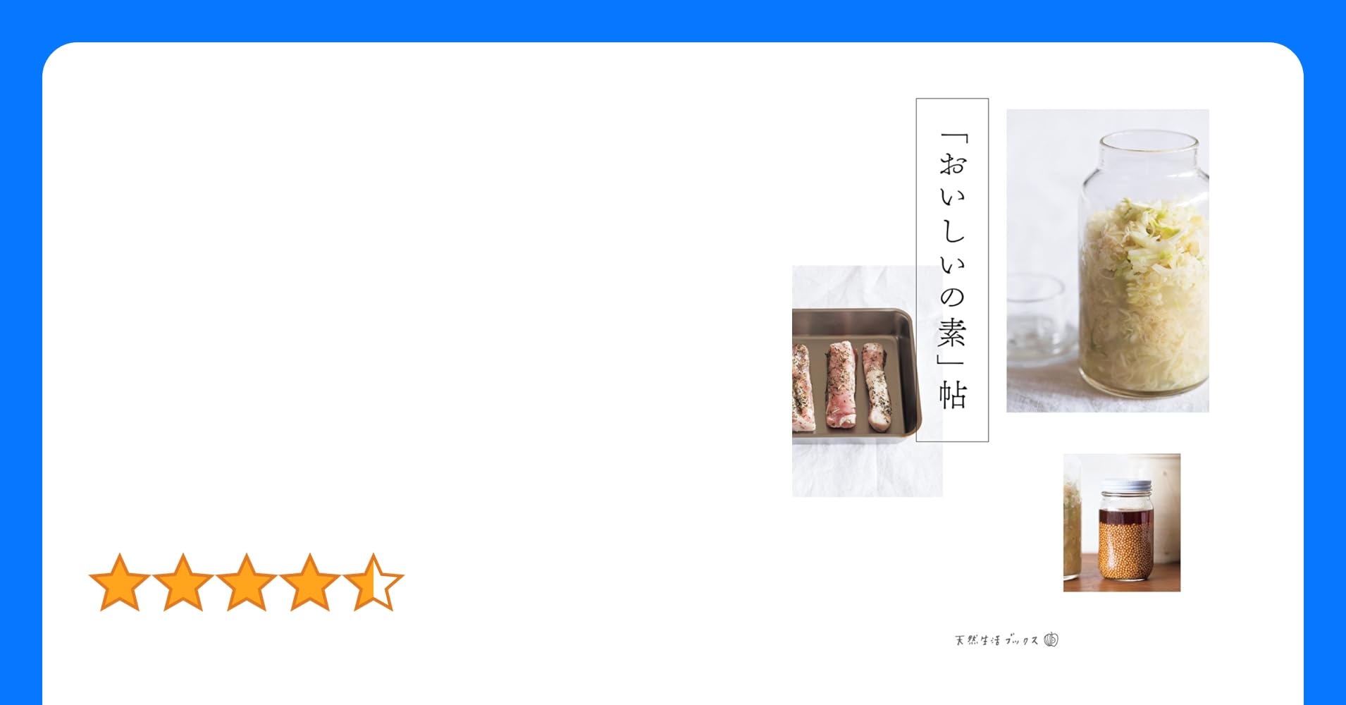ワタナベマキ、広沢京子、こてらみや、どいちなつ、塩山奈央、枝元なほみ、坂田阿季子、瀬戸口しおり、がそれぞれ2011年から2016年まで天然生活で紹介したレシピをまとめた一冊です。おいしいの素とは、簡単、保存できる、アレンジできるレシピのことで、楽したい毎日の献立の参考になるものばかりでした。