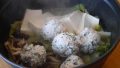 ラップでの巻き終わりはねじるようにしてしっかり巻き終わったら沸騰したお湯の中で10分間弱火の中火で煮ていきます。
